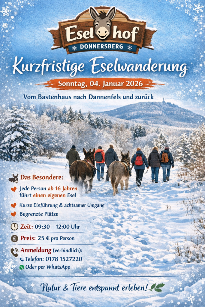 Eselwanderung Bastenhaus/Dannenfels und zurück am 4.1.2026