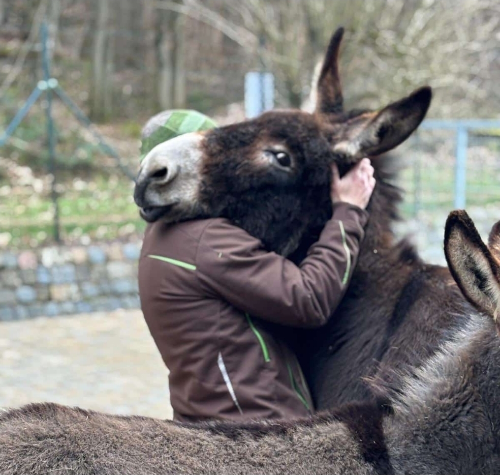 Die Esel reagieren fein auf Stimmungen und Körpersprache und können helfen, wieder Boden unter den Füßen zu spüren und einen Moment der Ruhe zu finden.